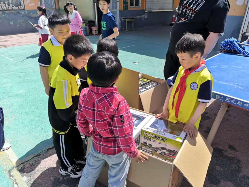 The SPEED (China) team presented remote-controlled cars to the principal of Zhiquan Primary School: